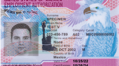 The applicable category of employment authorization is listed on an employee’s EAD: